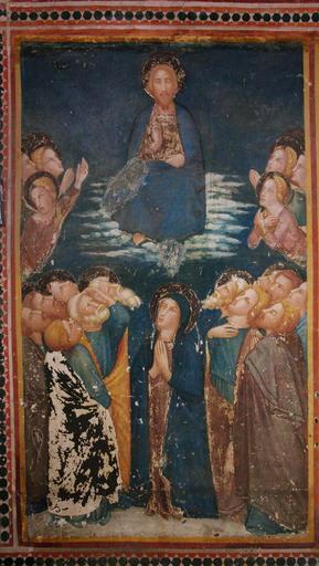 Keywords: CelaStMiquel Ascensio 3583.jpg Artwork Creator Jaume Ferrer Bassa L'Ascensió de Jesús ca 1346 Fresco Institution Monastery of Pedralbes Barcelona Cel·la de Sant Miquel Paret dreta carrer esquerre pis inferior Monestir de Pedralbes Barcelona Catalunya object history credit line accession number own PD-old-100 Capella de Sant Miquel a Pedralbes 14th-century religious paintings Frescos of the Ascension of Christ |