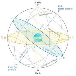 | Keywords: Celestial-sphere-ES.svg en How the coordinates of the celestial sphere are projections of the meridians and parallels of the earth there are portions of the celestial sphere that can not be observed by persons located in the Northern Hemisphere of Earth and vice versa es Cómo las coordenadas de la Esfera Celeste son proyecciones de los Meridianos y Paralelos de la Tierra existen porciones de la Esfera Celeste que no podrán ser observadas por personas ubicadas en el Hemisferio Norte de la Tierra y viceversa own Divad 04/06/2010 Diseño ex profeso para Wikipedia Astronomical diagrams |