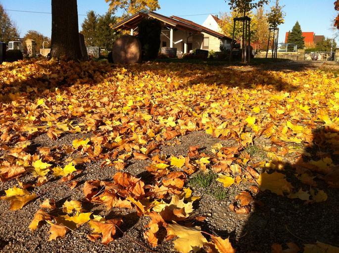 Keywords: cemetery autumn transience leaves golden autumn yellow gold ground peace