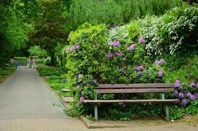 Keywords: cemetery cemetery complex bank park graves silent rest green reflection flowering shrubs trees