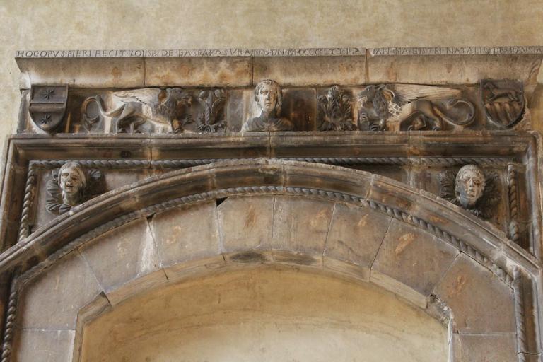 | Keywords: Cenacolo di Santo Spirito Florence - Door frame detail.JPG Artwork natale di ragusa title Türrahmen door frame portale en on the pendentives two male heads protrude from the foliage at the centre of the frieze on the trabeation is a male bust set between two flowers and two griffins 1471 marble cm 508 358 institution Cenacolo di Santo Spirito langswitch http //www piccoligrandimusei it/wp-content/uploads/2014/04/Fondazione-Salvatore-Romano_imp pdf piccoligrandimusei it p 130 http //www piccoligrandimusei it/wp-content/uploads/2014/04/Fondazione-Salvatore-Romano_imp pdf piccoligrandimusei it p 67 upper cornice artist ™s name and the date of execution hoc opus fiery fecit loisius de gasparo sub anno domini mcccclxxi per manum magistri natal is de rausia; the artist was from Dubrovnik Croatia the ancient Ragusa which in the 15th-century thanks to maritime trade had become a thriving Republic and a magnet for many painters and sculptors object history Salvatore Romano in the province of Salerno accession number MCF-FR 1946-23 own sailko Oursana DEFAULTSORT Natale di Raguso 05 Salvatore Romano Foundation collection Art from Salerno Reliefs from Italy 15th-century reliefs 15th-century reliefs from Italy Images by Oursana |