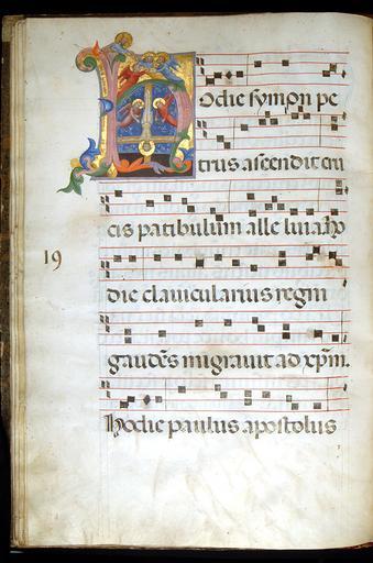 | Keywords: Cenni di Francesco di Ser Cenni - Leaf from Antiphonary - Walters W15319V - Open Reverse.jpg ca 1380 Medieval-early Renaissance ink paint gold parchment cm 60 5 41 8 accession number W 153 19V 5516 Chapel of Saint Nicholas of Bari of San Pier Maggiore Florence Marshall C Lefferts date and mode of acquisition unknown Henry Walters city Baltimore Walters Art Museum Henry Walters Acquired by Henry Walters 1901 place of origin Florence Italy Walters Art Museum license 2D Walters MS W153 - Antiphonary H as an initial Crucifixion of Saint Peter Miniatures of Saint Peter |