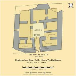 Keywords: Centenarium Gasr Duib Erdgeschoß - English.svg de Centenarium Gasr Duib Drawing of the building remains preserved on the ground floor at Gasr Duib in the region of the Upper Sofeggin Libya Considering the post-Roman inputs and conversions from the Islamic period Reference David J Mattingly Farming the Desert Gazetteer and pottery UNESCO Publishing 1996 S 76 own Mediatus 2015-06-05 German version 50px Cc-zero Limes Tripolitanus |