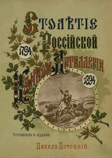 | Keywords: Centenary of the Russian Horse artillery by Pavel Pototsky.jpeg ru Титульный лист книги П П Потоцкого «Столетие Российской Конной А тилле ии 1794 1894 г » 1894 Столетие Российской Конной А тилле ии 1794 1894 г Санкт-Пете бу г 1894 author Custom license marker 2014 09 15 PD-RusEmpire Uploaded with UploadWizard Books of the history of Russia Books from Russia 1894 Pavel Platonovich Potocki | ||||