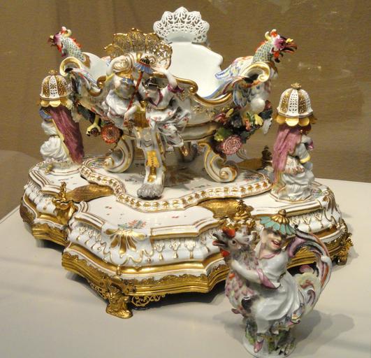 | Keywords: Centerpiece and Stand with Pair of Sugar Caster and Oil or Vinegar Cruet, view 1, c. 1737, Meissen Porcelain Manufactory, modeled by Johann Joachim Kandler - Art Institute of Chicago - DSC09996.JPG Exhibit in the Art Institute of Chicago Chicago Illinois USA This artwork is in the public domain because the artist died more than 70 years ago Photography was permitted in the museum without restriction Daderot 2012-10-10 15 42 21 Daderot cc0 cc0 Meissen porcelain in the Art Institute of Chicago Meissen porcelain Johann Joachim Kaendler |