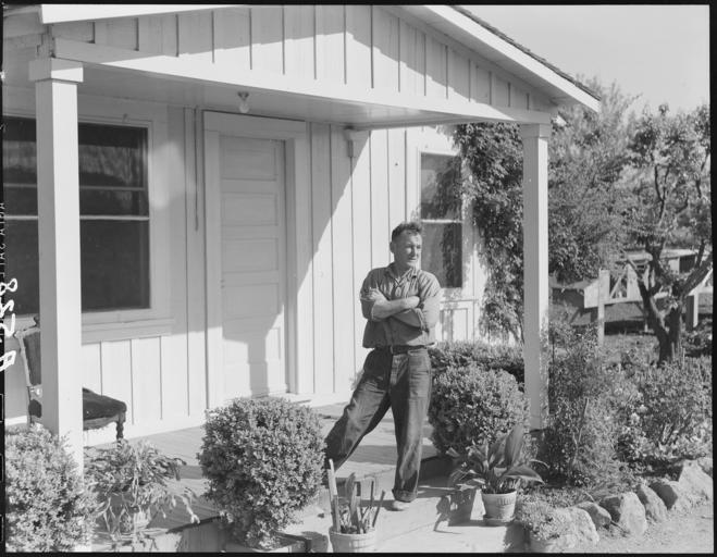 Keywords: Centerville, California. Yugoslavian farmer is taking over berry farm formerly operated by resident . . . - NARA - 536420.jpg Scope and content The full caption for this photograph reads Centerville California Yugoslavian farmer is taking over berry farm formerly operated by residents of Japanese ancestry who are being sent to assembly points and later to be housed in War Relocation Authority centers for the duration General notes 536420 Local identifier 210-G-A528 Department of the Interior War Relocation Authority 02/16/1944 - 06/30/1946 NARA-Author Lange Dorothea 1895-1965 Photographer 1372774 <br /> Still Picture Records Section Special Media Archives Services Division NWCS-S National Archives at College Park 8601 Adelphi Road College Park MD 20740-6001 1942-04-18 Record group Record Group 210 Records of the War Relocation Authority 1941 - 1989 Record group ARC 537 Central Photographic File of the War Relocation Authority compiled 1942 - 1945 Series ARC 536000 File unit File unit ARC Variant control numbers NAIL Control Number NWDNS-210-G-A528 Other versions <gallery> File Centerville _California _Yugoslavian_farmer_is_taking_over_berry_farm_formerly_operated_by_resident_ _ _ _-_NARA_-_536420 tif tif File Centerville _California _Yugoslavian_farmer_is_taking_over_berry_farm_formerly_operated_by_resident_ _ _ _-_NARA_-_536420 jpg jpg </gallery> NARA-cooperation PD-USGov Japanese American internment processing in Centerville Alameda County California People of Yugoslavia Farms in California Porches in California Dorothea Lange Black and white photographs of men |
