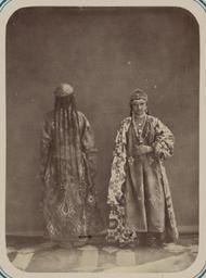 | Keywords: Central Asian Women's Adornment and Clothing. A Woman with Long Braids Decorated with Beads and Another Wearing an Assortment of Jewelry WDL11189.png Artwork ru Кун Александ Людвигович 1840 1888 гг fr Kun Aleksandr L 1840-1888 en Kun Aleksandr L 1840-1888 zh 亚历山大·L· ,1840-1888 年 pt Kun Aleksandr L 1840-1888 ar كُن، ألكسندر ل ، 1840-1888 es Kun Aleksandr L 1840-1888 ru Женские ук ашения и одежда в С едней Азии Женщина с длинными косами ук ашенными бусинами и д угая женщина в азличных ук ашениях fr Ornements et vêtements des femmes d'Asie Centrale Femme portant de longues tresses décorées de perles et une autre portant un assortiment de bijoux en Central Asian Women's Adornment and Clothing A Woman with Long Braids Decorated with Beads and Another Wearing an Assortment of Jewelry zh 中亚妇女的饰物和 装: 个女人用珠子装饰长辫,另 个女人佩戴 各种首饰 pt Adornos e vestuário das mulheres da Ásia Central Uma mulher com longas tranças decoradas com contas e outra usando diversas joias ar زينة وأزياء نساء وسط آسيا امرأة لها ضفائر طويلة مُزَينة بالخَرَز وأخرى تتقلد مجموعة متنوعة من المجوهرات ru Эта фотог афия входит в этног афическую часть <em> Ту кестанского альбома </em><em></em> всесто оннего исследования Цент альной Азии п едп инятого после того как в 1860-х годах в егионе установилось господство Российской импе ии Альбом созданный по аспо яжению гене ала Константина Пет овича фон Кауфмана 1818 1882 годы пе вого гене ал-губе нато а оссийского Ту кестана состоит из четы ех частей в шести томах «Часть а хеологическая» два тома «Часть этног афическая» два тома «Часть п омысловая» один том и «Часть исто ическая» один том Основным составителем альбома был оссийский востоковед Александ Людвигович Кун аботавший совместно с иколаем Венедиктовичем Богаевским В альбоме п едставлено около 1200 фотог афий а также а хитекту ные планы аква ельные исунки и ка ты «Часть этног афическая» включает в себя 491отдельную фотог афию на 163 листах а фотог афиях изоб ажены п едставители азличных на одов егиона листы 1 33 повседневная жизнь и итуалы листы 34 91 а также виды де евень и го одов уличные то говцы и комме ческая деятельность листы 92 163 <br>Одежда и платье; Этног афические фотог афии; Г упповые по т еты; Ук ашения для волос; Ювели ные ук ашения; Фотог афические исследования; По т етные фотог афии; Халаты; Тю кские на оды fr Cette photographie est extraite de la partie ethnographique de l'<em>Album du Turkestan</em> étude visuelle complète de l'Asie centrale entreprise après que l'Empire russe prit le contrôle de la région dans les années 1860 Commandé par le général Konstantin Petrovich von Kaufman 1818 1882 premier gouverneur général du Turkestan russe l'album est composé de six volumes en quatre parties la partie archéologique deux volumes la partie ethnologique deux volumes la partie sur les métiers un volume et la partie historique un volume L'album fut essentiellement compilé par l'orientaliste russe Aleksandr L Kun assisté de Nikolai V Bogaevskii Il comporte près de 1200 photographies et inclut également des plans architecturaux des dessins à l'aquarelle et des cartes La partie ethnographique compte 491 photographies sur 163 planches montrant des individus des différentes peuplades de la région planches 1 à 33 des scènes de la vie quotidienne et des rites planches 34 à 91 ainsi que des vues de villages et de villes de vendeurs ambulants et d'activités commerciales planches 92 à 163 <br>Vêtements et habits; Photographies ethnographiques; Portraits de groupe; Ornements de coiffure; Bijoux; Inventaires photographiques; Portraits photographiques; Toges; Peuples turciques en This photograph is from the ethnographical part of <em>Turkestan Album</em><em> </em>a comprehensive visual survey of Central Asia undertaken after imperial Russia assumed control of the region in the 1860s Commissioned by General Konstantin Petrovich von Kaufman 1818 82 the first governor-general of Russian Turkestan the album is in four parts spanning six volumes Archaeological Part two volumes ; Ethnographic Part two volumes ; Trades Part one volume ; and Historical Part one volume The principal compiler was Russian Orientalist Aleksandr L Kun who was assisted by Nikolai V Bogaevskii The album contains some 1 200 photographs along with architectural plans watercolor drawings and maps The Ethnographic Part includes 491 individual photographs on 163 plates The photographs show individuals representing the different peoples of the region Plates 1 33 ; daily life and rituals Plates 34 91 ; and views of villages and cities street vendors and commercial activities Plates 92 163 <br>Clothing and dress; Ethnographic photographs; Group portraits; Hair ornaments; Jewelry; Photographic s