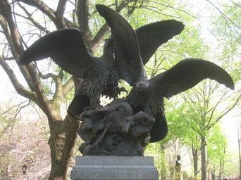 | Keywords: Central Park NYC - Eagles and Prey Sculpture by Christophe Fratin - IMG 5715.JPG Eagles and Prey sculpture by Christophe Fratin 1801-1864 Central Park New York City New York USA Statue by Christophe Fratin 1801-1864 ; I took this photograph Statue cast in Paris in 1850 and installed in Central Park in 1863; photograph taken on April 8 2010 Statue by Christophe Fratin 1801-1864 ; I took this photograph Public domain - author died more than 70 years ago 40 46 18 N 73 58 23 1 W heading NE Eagle and Prey by Christophe Fratin PD-old |