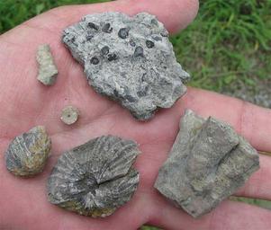 Keywords: Central-Tennessee-fossils.jpg Fossils from a roadcut in central Tennessee According to the Geology of Eastern North America Peterson Field Guide they were deposited either during the Ordovician Period or the Mississippian Epoch of the Carboniferous Period JIM CONRAD'S NATURALIST NEWSLETTER Written and issued at Semiway McLean County Kentucky USA http //www backyardnature net/n/08/080713 htm http //www backyardnature net/n/08/080713rf jpg 2008-07-13 Jim Conrad Jim Conrad See http //www backyardnature net/j/copyrite htm Ordovician fossils from Tennessee Carboniferous fossils from Tennessee