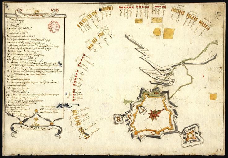 Keywords: Cerco Campo Maior 1712.jpg en Plan of the siege of Campo Maior 1712 in the Book of various plants of this Kingdom Portugal and of Castile between 1699 and 1743 pt Plano do cerco a Campo Maior 1712 no Livro de varias plantas deste Reino e de Castela entre 1699 e 1743 http //purl pt/12158/1/P94 html Biblioteca Nacional de Portugal<br>Cota D A 7 A índice > 47 CORREIA João Tomás ca 1667- between 1699 1743 Institution Institution Biblioteca Nacional de Portugal PD-Art-100 Cartography in the BNP Fortress of Campo Maior Floor plans of fortresses in Portugal 18th-century fortress plans Files uploaded by User JotaCartas |