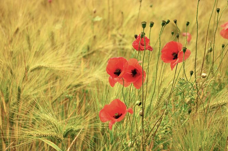 Keywords: cereals poppy poppies barley barley field cornfield agriculture field harvest nature spike field crops grain