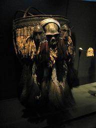 Keywords: Ceremonial basket Konyak Naga.jpg en Ceremonial basket of the Konyak Naga Nagaland India with a monkey´s skull and two human heads carved from wood This basket is a status symbol It may be a remembrance of the Nagas´old headhunting practices State Museum of Etnology Leiden The Netherlands nl Ceremoniële mand van de Konyak Naga Assam India met een apenschedel en twee uit hout gesneden mensenhoofden Deze mand is een statussymbool dat mogelijk herinnert aan de vroegere praktijk van het koppensnellen Rijksmuseum voor Volkenkunde Leiden Nederland es Canasto ceremonial de los Konyak Naga Assam India con una calavera de un mono y dos cabezas humanas de madera Esto canasto es un simbolo de majestuosidad que trae a la memoria la usada de cazando cabezas en tiempos pasados Museo Nacional de Etnologia Leiden Holanda/Los Paises Bajos Own ease 2009-09-23 Culture of Nagaland Baskets of India Museum Volkenkunde Leiden Koniak tribe Primate skulls |