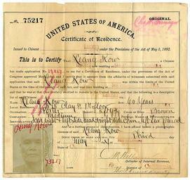 View Original:Certificate_of_residence_for_Leang_Kow,_porter,_age_60_years,_of_San_Francisco,_California.jpg (800x756)