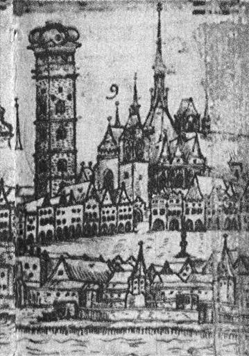 | Keywords: České Budějovice, rytina Jan Willenberg, výřez (chrám).png en Crop of Willenberg's veduta of Ceske Budejovice cs Výřez Willenbergovy veduty Českých Budějovic s chrámem svatého Mikuláše podoba před velkým požárem book České Budějovice Jakub Pavel Johan Willenberg 1571-1613 1602 PD-old-100 Engravings by Jan Willenberg Towers in České Budějovice |