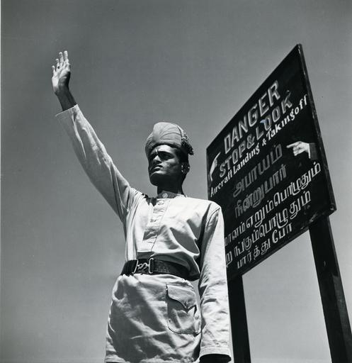 | Keywords: Ceylon-old-world-aids-the-war-RG-208-AA-158-G-001.jpg Photograph en East has met west in Ceylon and in the twain are joined a common effort against the Japanese Taken at a British Fleet Air Arm base by a U S Navy photographer during a visit of a Navy carrier to the Indian waters to participate in combined operations against the Jap-held East Indies these photographs portray the seeming anachronism of the war in Ceylon --where the Old World helps the New towards Victory This gesture means 'Stop ' in any language A Ceylon Chovkidar watchman in a red helmet and blue uniform bars visitors to the base until credentials are checked 1944-07-21 institution National Archives and Records Administration Official U S Navy Photograph author RG-208-AA-158-G 001 <gallery> RG-208-AA-158-G-001 tif tif </gallery> PD-USGov-FSA PD-USGov-Military-Navy NARA-cooperation Uploaded with UploadWizard Files from NARA ExtravaSCANza Sri Lanka in the 1940s |