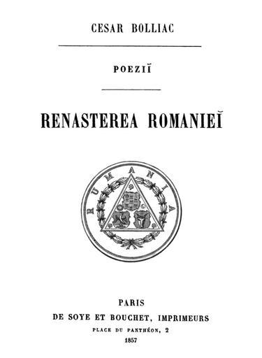 | Keywords: Cezar Bolliac - Renasterea Romaniei.png Title page of Renaşterea României poesii by Cezar Bolliac published by De Soye et Bouchet Imprimeurs Paris in 1857 http //books google com/books id 1XstAAAAYAAJ 1857 Cezar Bolliac - De Soye et Bouchet Imprimeurs Paris PD-old Books by Cezar Bolliac |