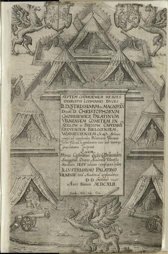 | Keywords: Chadkievičy. Хадкевічы (1642).jpg Хадкевічаў Chadkievičy «Septem Chodkiewicii heroes exercitvs Lithvanici dvces Christophorvm Chodkiewicz palatinvm Vilnensem comitem in Szklow et Biichow capitaneum Krevensem Bielocensem Wisnieviensem etc etc sollenni pompa ad capessendos palatinatus Vilnensis fasces Vilnam ingredientem suis sub tentorijs gratulatione excipiunt» выдадзеная ў д ука ні Віленскай езуіцкай акадэміі en Book by Peter Kazimir Lacki about the glorification of the Chodkiewicz family «Septem Chodkiewicii heroes exercitvs Lithvanici dvces Christophorvm Chodkiewicz palatinvm Vilnensem comitem in Szklow et Biichow capitaneum Krevensem Bielocensem Wisnieviensem etc etc sollenni pompa ad capessendos palatinatus Vilnensis fasces Vilnam ingredientem suis sub tentorijs gratulatione excipiunt» 1642 The author of the engravings Conrad Getke Printed in the printing house of the Vilno Jesuit Academy ru Книга Пет а Казими а Ляцкога о гло ификации ода Ходкевичей «Septem Chodkiewicii heroes exercitvs Lithvanici dvces Christophorvm Chodkiewicz palatinvm Vilnensem comitem in Szklow et Biichow capitaneum Krevensem Bielocensem Wisnieviensem etc etc sollenni pompa ad capessendos palatinatus Vilnensis fasces Vilnam ingredientem suis sub tentorijs gratulatione excipiunt» 1642 Авто г авю ы Кон ад Гётке апечатано в типог афии Виленской иезуитской академии be Кніга Пят а Казімі а Ляцкага аб гла ыфікацыі оду Хадкевічаў «Septem Chodkiewicii heroes exercitvs Lithvanici dvces Christophorvm Chodkiewicz palatinvm Vilnensem comitem in Szklow et Biichow capitaneum Krevensem Bielocensem Wisnieviensem etc etc sollenni pompa ad capessendos palatinatus Vilnensis fasces Vilnam ingredientem suis sub tentorijs gratulatione excipiunt» 1642 ад укавана ў д ука ні Віленскай езуіцкай акадэміі 1 Liškevičienė J XVI-XVIII amžiaus knygų grafika V 1998 <br> 2 Biblioteka Narodowa SD XVII 4 101 http //polona pl/item/25594933/4/ Conradt Götke fl 1635-1652 1642 120px PD-old-100 Chodkiewicz family Konrad Götke |