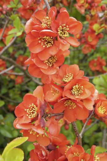 Keywords: chaenomeles japonica ornamental quince bush red orange flowers japanese ornamental quince