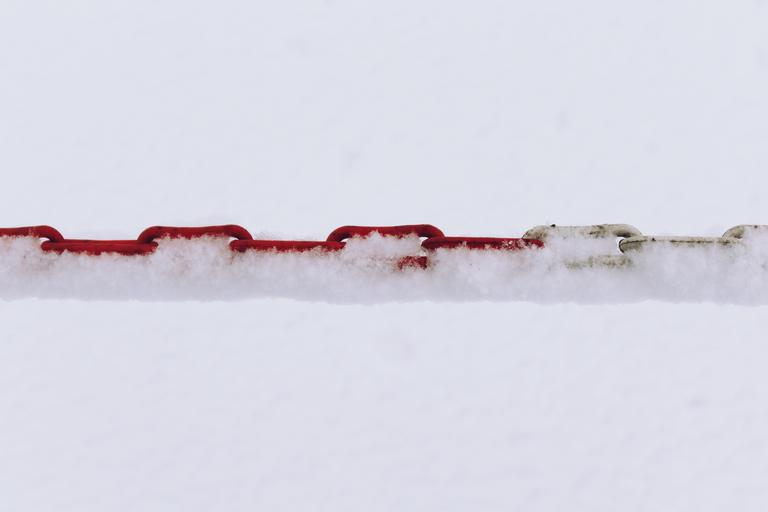 Keywords: chain chain link metal connection connected connectedness members border demarcation shut off caution secure security limit barrier symbol snow winter cold wintry white