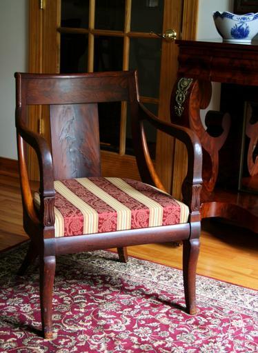 Keywords: chair seat sit used furniture antique late classical 1837 gondola style