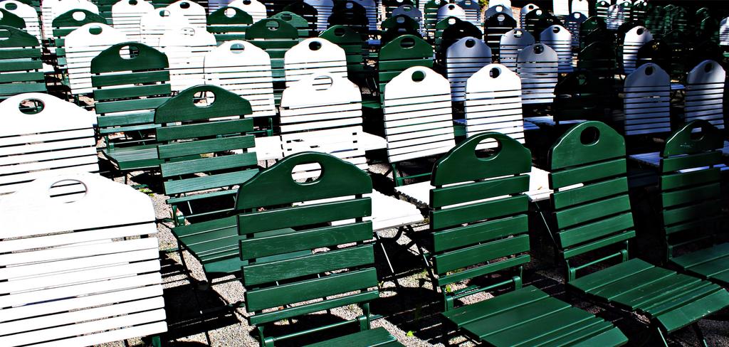 Keywords: chairs rows of seats seating area chair series green white sit folding chair