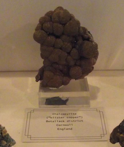 Keywords: Chalcopyrite cornwall.jpg en Chalcopyrite from Cornwall England On display at the San Diego County Fair California USA own Stickpen 2010-06-16 public domain Chalcopyrite Blister copper