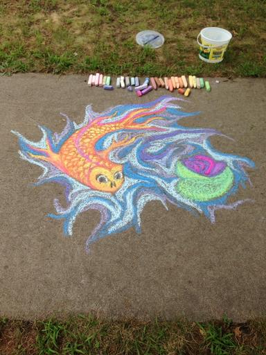 Keywords: chalk fish koi sidewalk outside park drawing hand design drawn