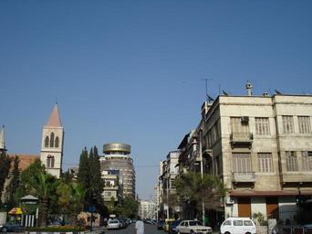 Keywords: Cham-habbobi.JPG حي الحبوبي منطقة المهاجرين دمشق فندق الشام في الأمام و كنيسة اللاتين على اليسار Alhabboubi street Cham hotel and Latin church Own 2007-07 Streets in Damascus Hotels in Damascus