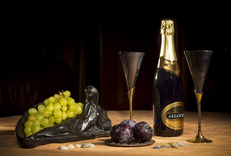 Keywords: champagne wine glasses grapes abkhazia seashells night