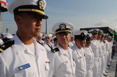 | Keywords: Change of command ceremony 120727-N-SD300-013.jpg en Ensign Andy Wang and fellow sailors assigned to the U S 7th Fleet flagship USS Blue Ridge LCC 19 form ranks during a change of command ceremony in Yokosuka Japan Capt Will Pennington relieved Capt Daniel Grieco to become the 25th commanding officer since the ship was commissioned in 1970 U S Navy photo by Mass Communication Specialist 3rd Class James Norman 2012-07-27 Seaman JAMES NORMAN https //www dvidshub net/image/634672 120727-N-SD300-013 2012-07-29 22 28 USS BLUE RIDGE LCC 19 AT SEA PD-USGov-Military-Navy USS Blue Ridge LCC-19 Images from DoD uploaded by Fæ |