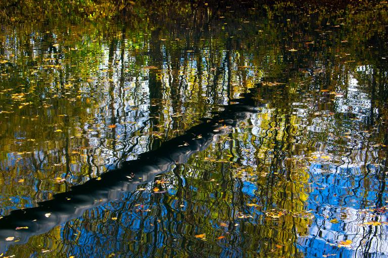 Keywords: channel water mirroring autumn river isar canal bank water surface fall foliage