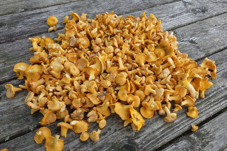 Keywords: chanterelles mushrooms collect edible food yellow cantharellus mushroom picking forest mushrooms