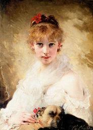 | Keywords: Chaplin-Her Favourite Dog.jpg century 19 Oil on canvas 18 x 12 7/8 inches 46 x 33 cm private collection accession number object history credit line http //www artrenewal org/asp/database/contents asp Art Renewal Center Museum http //www artrenewal org/asp/database/image asp id 13330 image 13330 Public domain PD-old-100 Charles Joshua Chaplin 19th-century paintings in unidentified private collections 1891< 19th-century portrait paintings of unidentified women 1891< 19th-century portrait paintings not categorised by year 19th-century oil portraits of women at half length 1891< 19th-century portrait paintings with dogs 1891< Pictures from the Art Renewal Center Portrait paintings of women holding dogs 1891< Portrait paintings of women with hair flowers 1891< 19th-century women looking at viewer in art |