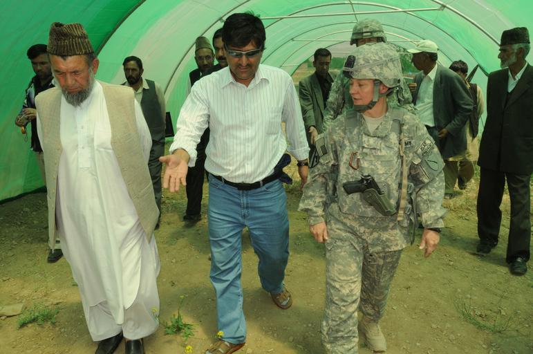 | Keywords: Charikar Goes Green DVIDS283513.jpg en Kentucky Agribusiness Development Team chief U S Army Lt Col Ruth Graves a Horse Cave Ky native gets a tour of a just completed greenhouse in Charikar from Shah Mirza Amiri the director of Agriculture Irrigation and Livestock Amiri plans on using the green houses as a training area to teach about water management and how to extend the growing season 2010-05-26 Sgt John Young https //www dvidshub net/image/283513 283513 2010-05-27 06 36 AF PD-USGov Kentucky Agribusiness Development Team Images from DoD uploaded by Fæ |