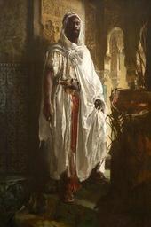 Keywords: Charlemont - The Moorish Chief.jpg Artwork Creator Eduard Charlemont A depiction of a w Moor Moorish chief The architecture of the building in the background resembles that of the Alhambra in Spain The painting was probably exhibited at 1878 Salon Paris Salon in Paris under the name Le Gardien du serail The Harem Guard 1878 oil panel in 59 125 38 5 Institution Philadelphia Museum of Art Gallery 155 Annenberg Galleries <br> Pennsylvania Philadelphia United States accession number Cat 951 object history 1917 John G Johnson Collection 1917 credit line http //www philamuseum org/collections/permanent/102792 html mulR 26596 1 http //www painting-palace com/files/255/25443_The_Moorish_Chief_f jpg other versions 100x100px Eduard Charlemont The Moorish Chief 1878 with frame jpg Eduard Charlemont Austrian - The Moorish Chief - Google Art Project jpg PD-Art-100 The Moorish Chief 1878 by Eduard Charlemont |