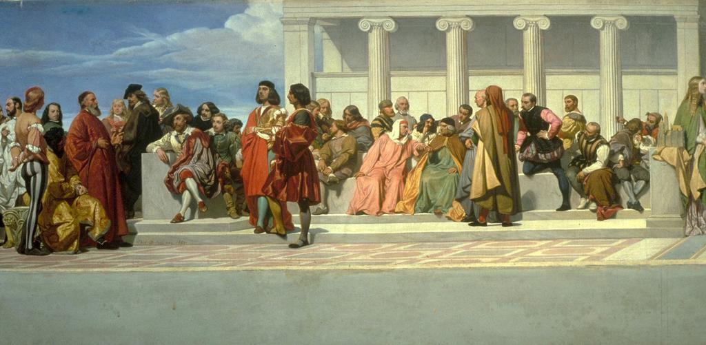 | Keywords: Charles Béranger - Replica of The Hémicycle - Walters 3783.jpg  Walters Art Museum artwork Q18749459 Creator Charles Béranger Paul Delaroche Hémicycle des Beaux-arts École Nationale Supérieure des Beaux-Arts This painting replicates Paul Delaroche's most famous work a mural in oils and wax 1836-41 in the auditorium of the École des Beaux-Arts in Paris France's most prestigious art school Delaroche's pupil Charles Béranger is thought to have begun this replica in 1841 but the master completed it following his pupil's death in 1853 It provided a basis for Louis Pierre Henriquel-Dupont's engraving reproducing the composition Represented are great artists of the past who appear to preside over the awards ceremonies held in the auditorium Enthroned in the center are the three masters of antiquity-Ictinus the architect Apelles the painter and Phidias the sculptor-flanked by personifications of Greek and Gothic art on the left and Roman and Renaissance art on the right Below the semi-nude figure of Fame leans forward to distribute laurel wreaths to the recipients of the coveted Grand Prix de Rome who were entitled to spend 4 to 5 years studying in Rome at the expense of the State Those European artists from the 13th through the 17th centuries whom Delaroche ranked as the most important are included in his great assembly To the left are 14 sculptors and a gathering of painters known as colorists and naturalists and to the right 13 architects 2 engravers and 19 painters distinguished for their drawing Although many of their names are familiar today among them Titian Rembrandt and Rubens on the left and Raphael Michelangelo and Poussin on the right others are less so Notably absent are Botticelli El Greco and Vermeer whose paintings were not rediscovered until later in the century According to the accounts of the dealer Adolphe Goupil the exceptionally elaborate frame cost 5 000 French francs or 1 000 a remarkable sum in 1853 1853 oil on canvas cm 41 6 257 3 ; with frame cm 106 05 315 28 15 56 accession number 37 83 8491 Delaroche Estate Sale Paris 1857 Sale M M Goupil et Cie Paris Georges Petit 1856-1920 date and mode of acquisition unknown William T Walters city Baltimore George A Lucas Agenda Oct 3 1871 Henry Walters city Baltimore Walters Art Museum Henry Walters Acquired by William T Walters 1871 Paul Delaroche 1853 ~ A Baltimorean in Paris George A Lucas 1860-1909 The Walters Art Gallery Baltimore 1979 Vive la France French Treasures from the Middle Ages to Monet The Walters Art Gallery Baltimore 1999-2000 Déjà Vu Revealing Repetition in French Masterpieces The Walters Art Museum Baltimore; Phoenix Art Museum Phoenix 2007-2008 19th Century Masterpieces from the Walters Art Museum Santa Barbara Museum of Art Santa Barbara; Jack S Blanton Museum of Art Austin 2010-2011 place of origin France <gallery> File Charles Béranger - Replica of The Hémicycle - Walters 3783 2 jpg File Charles Béranger - Replica of The Hémicycle - Walters 3783 3 jpg </gallery> Walters Art Museum license 2D French paintings in the Walters Art Museum Hémicycle des Beaux-arts by Paul Delaroche Charles Béranger Portraits of Peter Paul Rubens 1853 1850s paintings from France 1853 paintings Vive la France French Treasures from the Middle Ages to Monet |