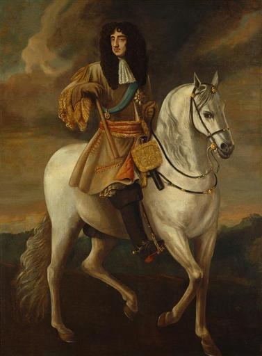 | Keywords: Charles II horse (Peter Lelly).jpg Equestrian portrait of King Charles II of England Scotland and Ireland c 1685 oil on canvas cm 260 191 Institution GAC accession number 8306 http //www gac culture gov uk/work aspx obj 10656 object page http //www gac culture gov uk/images 5Clarger 5C08306 jpg image; previous upload was http //www gac culture gov uk/search/Object asp object_key 27567 here other versions PD-old-100 DEFAULTSORT 1680<; Charles II of England Male portraits by Peter Lely Government Art Collection paintings Portraits of Charles II of England 17th-century oil equestrian portraits of men 17th-century portrait paintings in the United Kingdom Allonge wigs in paintings Equestrian portraits of kings Horses in art of the United Kingdom Jabots in art Male black boots in portrait paintings Over the knee boots Portrait paintings of men holding baton Stars of chivalric orders in portrait paintings |