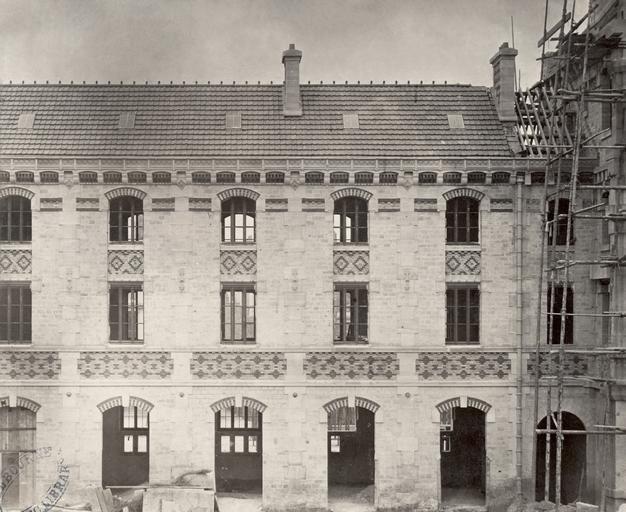 | Keywords: Charles Marville, Collége Chaptal, ca. 1853–70 II.jpg Section of wall showing decorative bichromic brickwork scaffolding at one corner with section of roof open showing wooden framework depicted people depicted place Lycée Chaptal circa 1853 “70 4 photographic prints mounted on cardboard albumen silver 25 8 x 38 4 cm and smaller Institution State Library of Victoria object history exhibition history credit line Gift; Government of France; 1880 Photographer not stated but possibly Charles Marville Titles inscribed in black ink on folio pages beneath images Undated dates assigned from Haussman's renovation of Paris accession number H88 19/2/46b SLVIC-digitalimage 132711 H88 19/2/46b PD-100 Historical images of Lycée Chaptal Paris Charles Marville - Photographic views of Paris Images of Paris from the State Library of Victoria |
