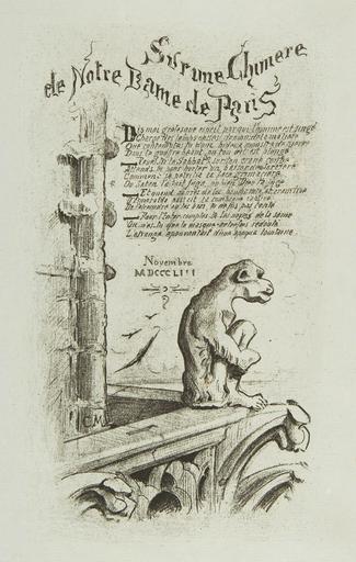 | Keywords: Charles Meryon, Regarding One of the Gargoyles of Nôtre-Dame de Paris, 1853.jpg Artwork Creator Charles Meryon Regarding One of the Gargoyles of Nôtre-Dame de Paris 1853 Facsimile of a drawing on blue-green laid paper Image 7 7/8 x 4 1/2 in 20 x 11 4 cm <br> Sheet 14 5/8 x 9 3/4 in 37 1 x 24 8 cm Institution Metropolitan Museum of Art object history exhibition history credit line Gift of M Knoedler Co 1920 368078 Marking Stamped verso in violet ink with the mark of B Buchanan MacGeorge Lugt 394 accession number 20 21 1 PD-100 Chimeras of Notre-Dame de Paris Engravings of Notre-Dame de Paris Charles Meryon Images of Paris from the Metropolitan Museum of Art 1853 in Paris Drawings of Paris 1853 drawings Notre-Dame de Paris in the 1850s |