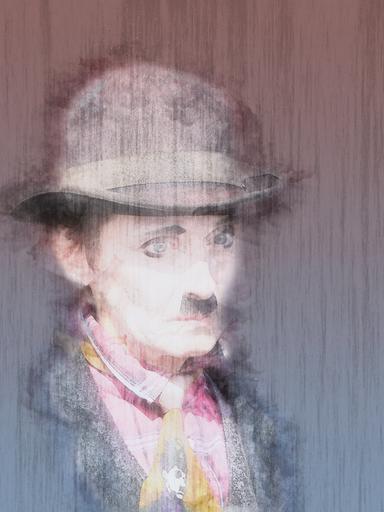 Keywords: charlie chaplin copy circus white costume sad expression face human humor performance woman entertainment comedian head hat tie beard person computer design art painting computer creation watercolor