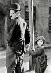 Keywords: charlie chaplin jackie coogan actor man boy person scene bored sad comedian the kid movie motion picture black and white monochrome film cinema star celebrity vintage