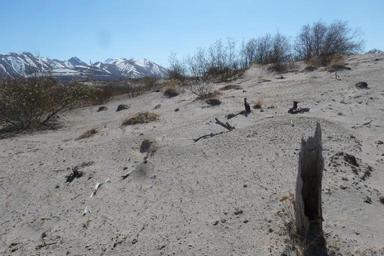 | Keywords: valley of ten thousand smokes valleyoftenthousandsmokes outdoor Pyroclastic flows were deposited somewhat sluggishly at the lower end of the Valley. The flows charred and burned vegetation but didn't always topple it. NPS photo by M. Fitz. Pyroclastic flows were deposited somewhat sluggishly at the lower end of the Valley. The flows charred and burned vegetation but didn't always topple it. NPS photo by M. Fitz. | ||||