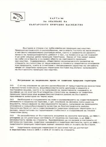 | Keywords: Charter-89-BG-Page-1.png en Charter '89 for Preservation of the Bulgarian Nature Heritage Ecoglasnost 1989 Page 1 Bulgarian version bg Ха та '89 за опазване на бълга ското п и одно наследство Екогласност 1989 ст 1 own Apcbg 2010-04-22 Documents of Bulgaria |