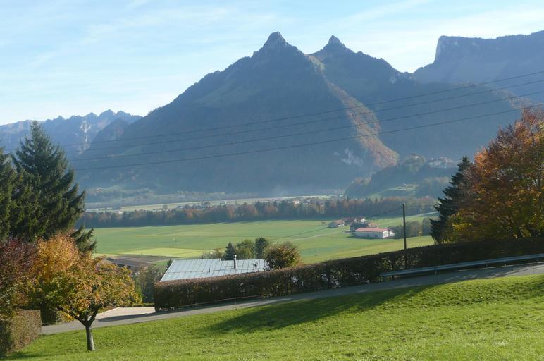 | Keywords: Château de Gruyères & Gruyère from Le Pâquier-Montbarry (Le Pâquier (Fribourg)) (autumn) 12.jpg en Château de Gruyères Gruyère from Le Pâquier-Montbarry Le Pâquier Fribourg autumn Dent de Broc 1829 m Dent du Chamois 1830 m Dent du Buorgo 1909 m own MMMada Le Pâquier FR Mountains in the canton of Fribourg |