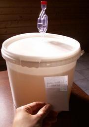 | Keywords: CheapFermentationVesselwithFermentationLock.JPG en A picture of a cheap fermentation vessel regular plastic buckets of 10l with integrated fermentation lock by drilling a hole inside the bucket and inserting the locke herein The whole costs but 1 5 ‚¬ where a demijohn with lock and sealing rubber may easily cost 30-35 ‚¬ The plastic bucket may however not last as long and is less environmentally friendly Own KVDP 2008-07-16 Plastic buckets Homebrewing Fermentation tanks | ||||