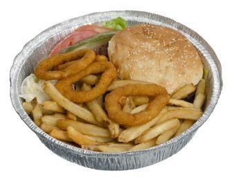 Keywords: cheeseburger to go diner new york city onion rings french fries meal burger food bun sesame seed fast take out sandwich beef eating cuisine usa