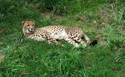 Keywords: cheetah resting zoo feline big cat wildlife carnivore fast spotted grass