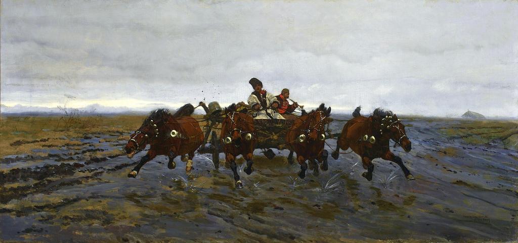 | Keywords: Chełmoński Four-in-hand.jpg Artwork Creator Józef Chełmoński 1880 oil canvas cm 52 3 109 Institution National Museum Warsaw 1 accession number MP 1927 object history ProvenanceEvent purchase National Museum in Warsaw credit line JOSEPH CHEŁMOŃSKI / 1880 r Paris signature/date/location bottom right http //cyfrowe mnw art pl/dmuseion/docmetadata id 4994 cyfrowe mnw art pl See below PD-old-100-1923 1914 DEFAULTSORT 1880; Four-in-hand High-resolution images from the National Museum in Warsaw Paintings by Józef Chełmoński in the National Museum in Warsaw 1880 paintings Chełmoński Józef 1880s paintings from Poland Chełmoński Józef Paintings of Ukrainian peasants Paintings of horse driving Four abreast driving Ukraine in art Ethnography of Ukraine |
