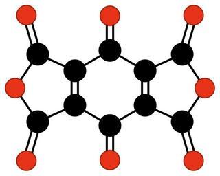Keywords: Chemfm benzoquinonetetracarboxylic anhydride.svg en Molecular 2D diagram of the benzoquinonetetracarboxylic dianhydride molecule for the en oxocarbon article own Jorge Stolfi 2010-02-16 Oxocarbon anions