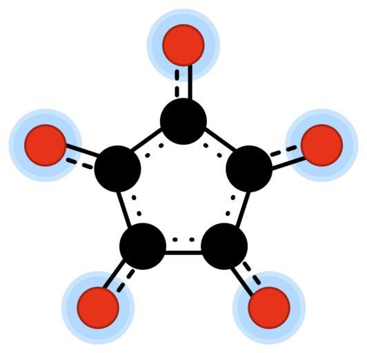 Keywords: Chemfm cyclopentanepentone 2neg.svg en Molecular 2D diagram of the croconate anion for the en oxocarbon anion article own Jorge Stolfi 2010-02-15 Oxocarbon anions